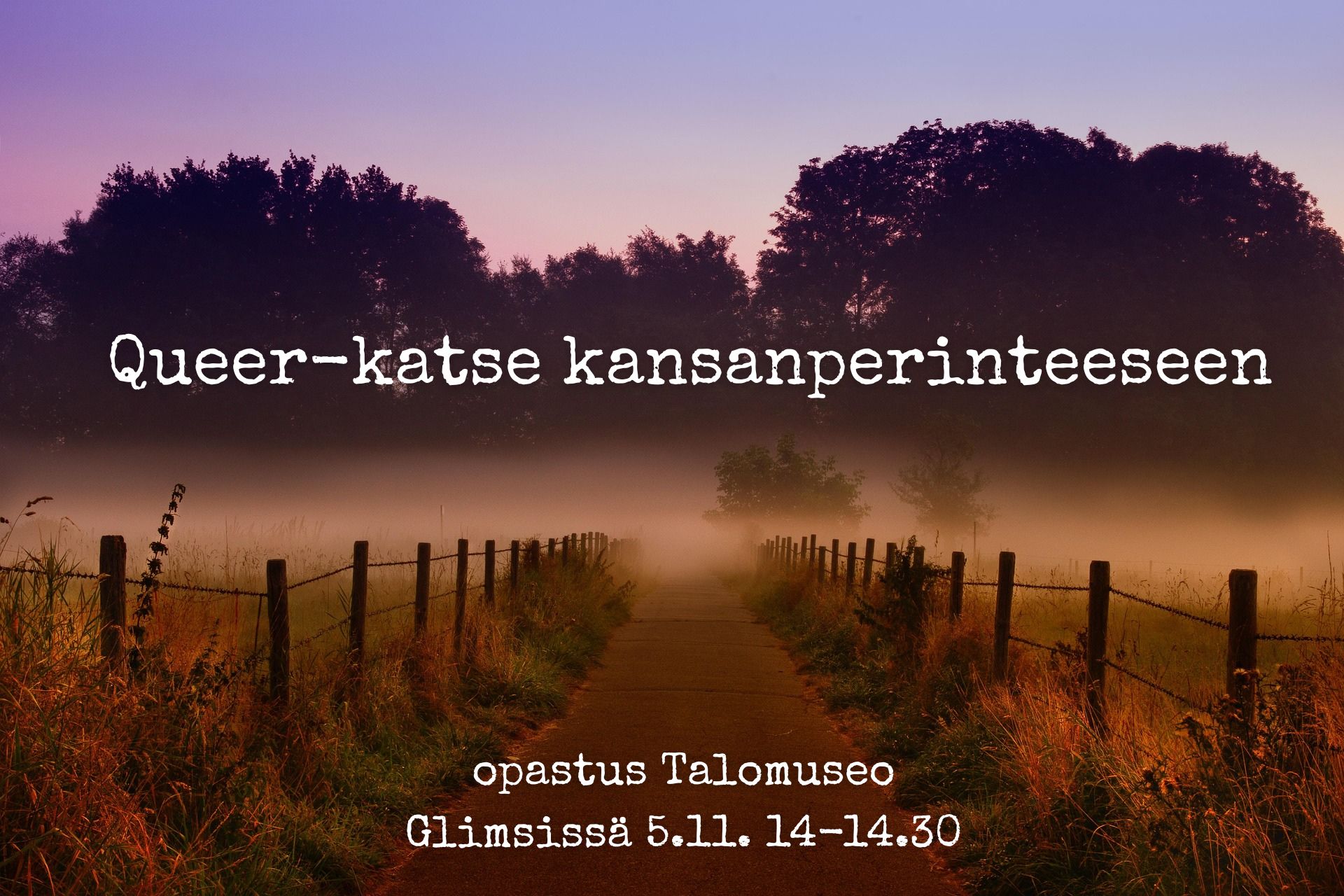 Talomuseo Glimsin opastuksella idyllisessä maisemassa suomalaiseen kansanperinteeseen luodaan queer-katse. Kun sukupuolen ja seksuaalisuuden normeja kyseenalaistetaan, muinaisuskon myytit näyttäytyvät uudesta näkökulmasta. Miten Kalevalasta tehdään queer-luenta? Miten sateenkaarevuudesta on puhuttu kansanperinteessä?