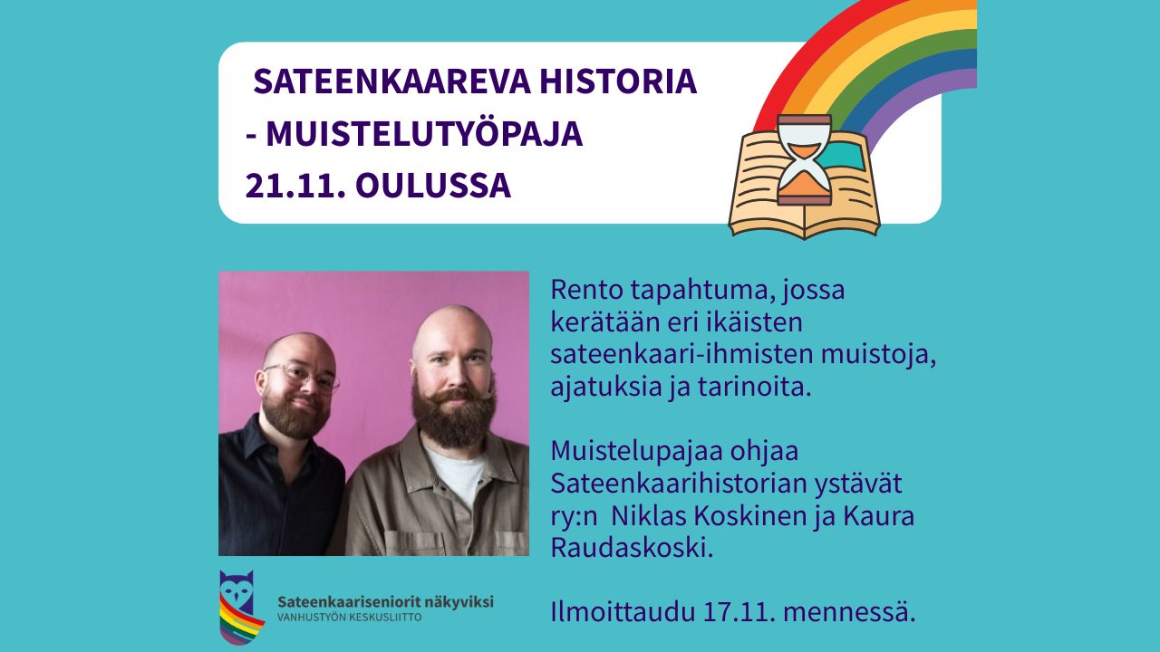 Vanha Kirkkopuisto Lönnrotinkatu 6, HelsinkiTervetuloa sateenkaarihistorialliselle kävelylle! Kierros alkaa Vanhasta kirkkopuistosta ja päättyy Tähtitorninmäelle. Kierroksella sukelletaan 1900-luvun alun Helsinkiin sateenkaari-ihmisten näkökulmasta. Millaisia mahdollisuuksia Helsinki tarjosi heille, joiden seksuaalisuus tai sukupuoli ei mahtunut aikansa ahtaisiin… Lue lisää »Sateenkaarihistoriallinen kierros 1900-luvun alun Helsingissä